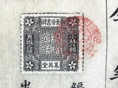 上部に "東亰書肆"、下部に "集英堂"、右に "小林八郎"、左に "真版之証"、中央に "版權免許" とある。割印は丸印、判読できない。