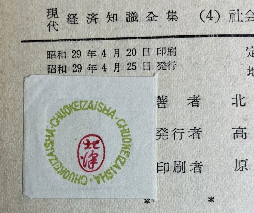 現代経済知識全集(中央経済社)の検印紙と書架引換副券