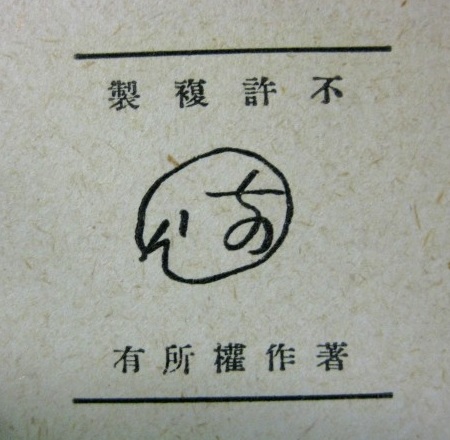文藝春秋新社の1960年ごろの出版物には、この例が多く見られる。おそらく出版社側の意向で、検印作業を省略したものだと思う。