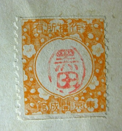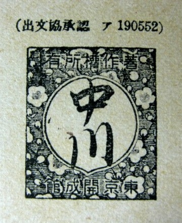 また、東京開成館の出版物には、検印だけでなく検印紙まで奥付に直接印刷している例がある。